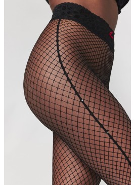 Notre joli collant ANNA de notre collection Automne-Hiver 2023 est un collant fantaisie. Son design inimitable et indémodable ne manquera pas de vous séduire. Collant résille avec une couture opaque noire le long de la jambe avec des petites pierres argentées incrustées sur la couture. Bande dentelle siliconée à la ceinture.